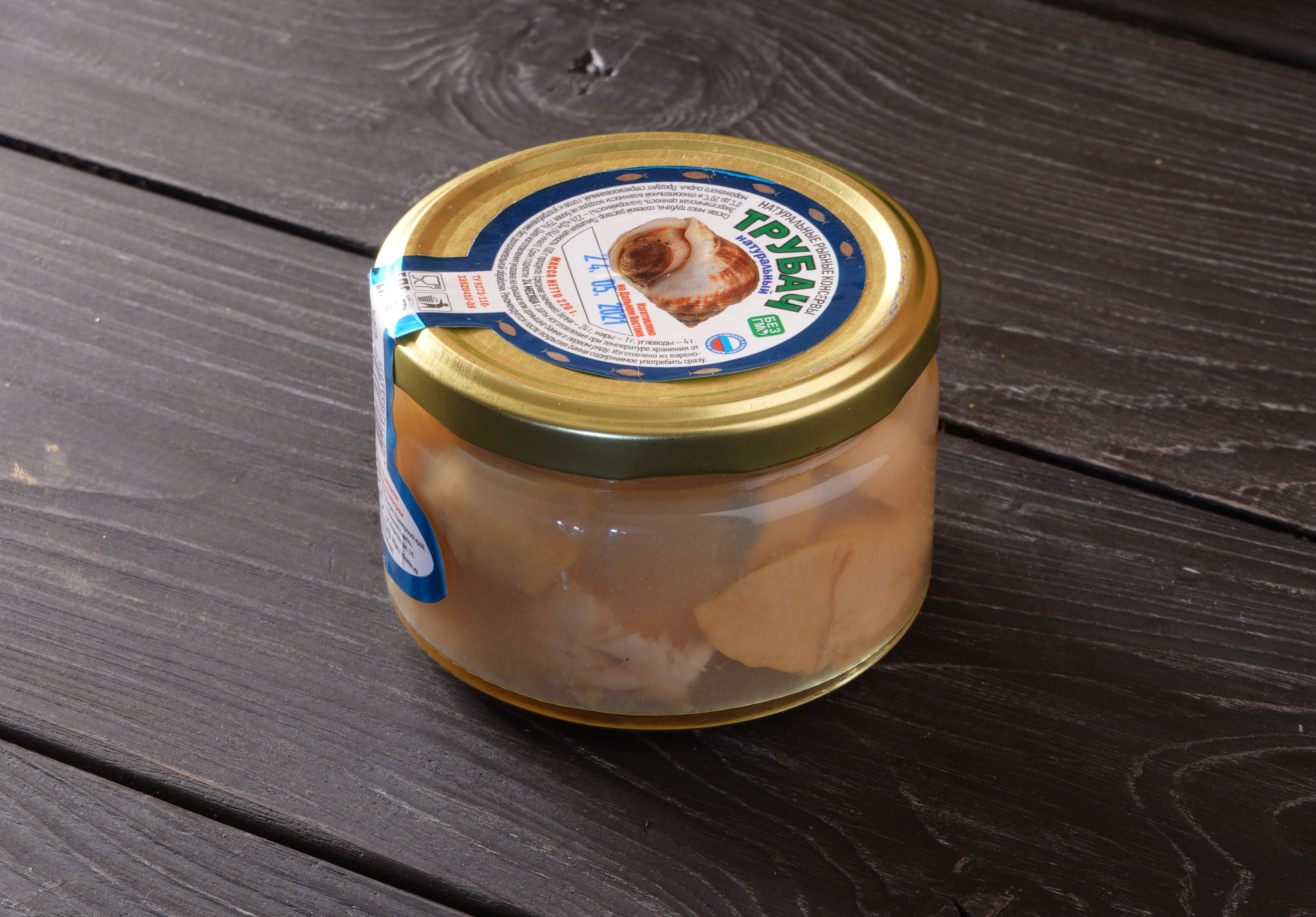 Аромат трубача натурального более ярок, чем у гребешка. Консервы позволяют распробовать настоящий вкус этого морепродукта. Они приготовлены только из мяса трубача и солевого раствора.